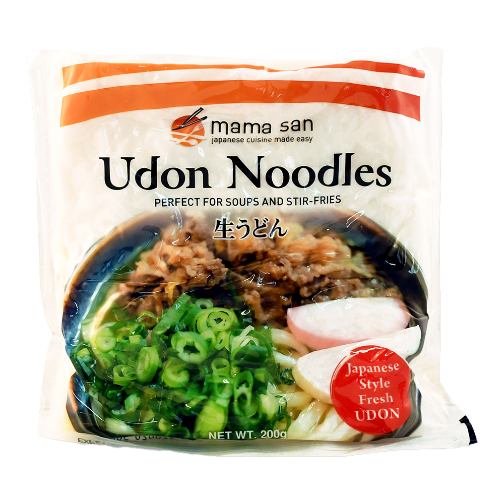 mama san Udon Noodles (LL Noodles) are fresh-style Japanese udon noodles with a satisfyingly chewy texture, simply prepared by soaking in hot water.