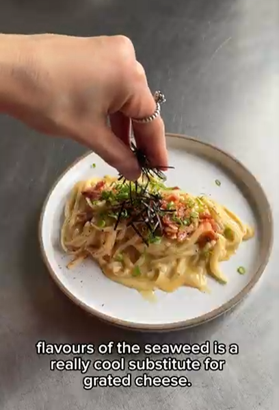 6. Plate up, and garnish with the seaweed strips, spring onion, and shichimi/nanami
